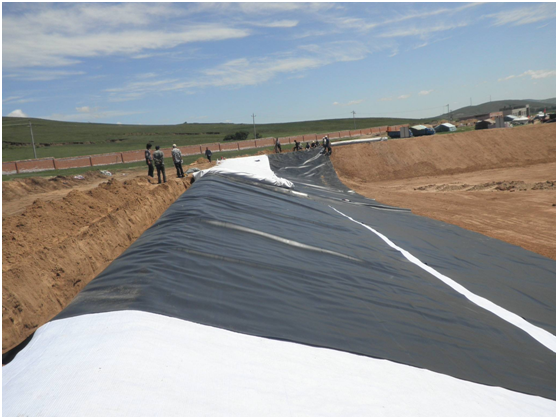 风力超过在4级以上时不得进行HDPE防渗膜施工,有4级以下刮风的天气,为防止风力影响施工,防渗膜应用沙袋压牢。施工温度应在4-35°C之间;要在气候干燥条件下进行,下雨或空中含有较多水分(如雾或露水)天气下不能进行施工。